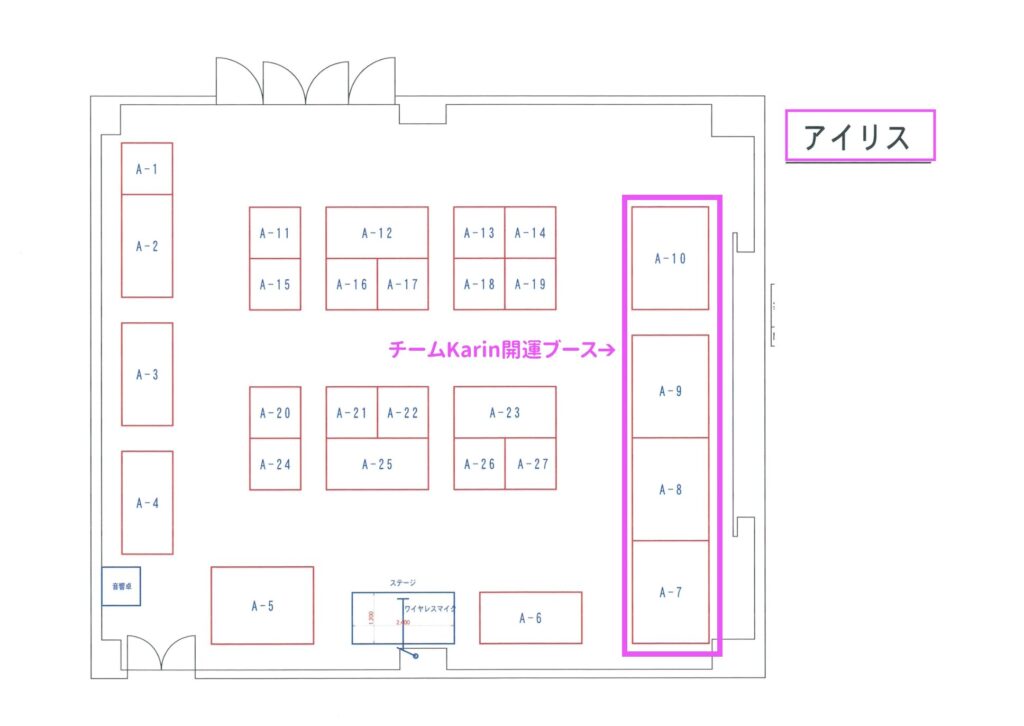 ★会場マップです。チームKarin開運ブースはアイリスのお部屋です