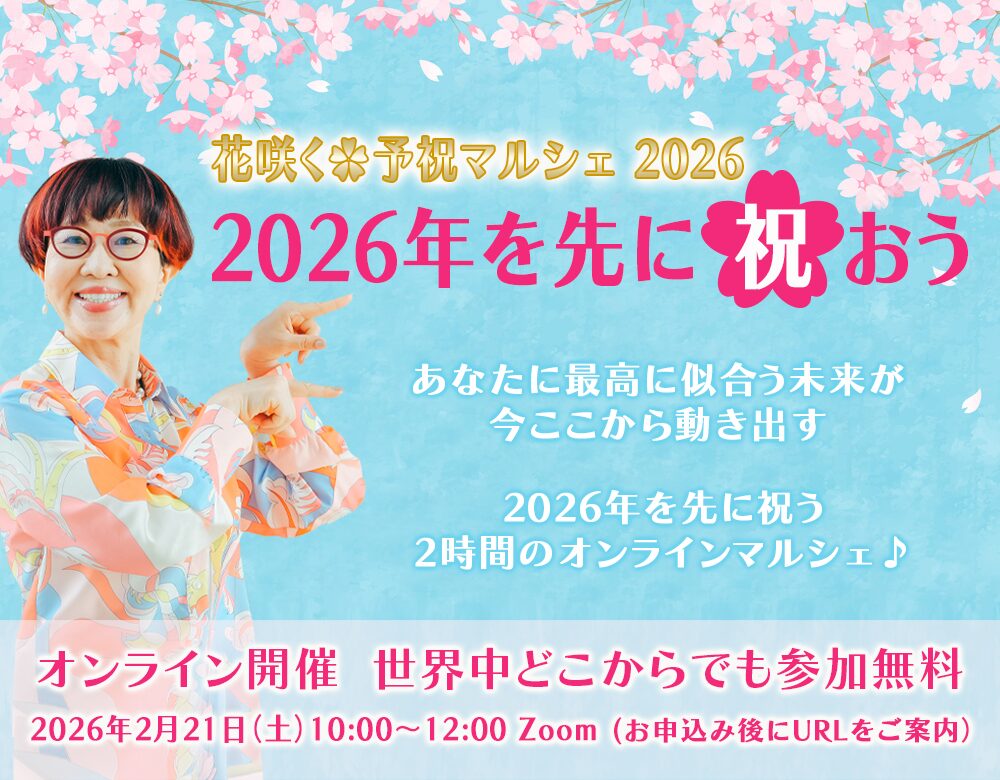 【2026/2/21】zoom開催!花咲く✿予祝マルシェ オンライン開催:世界中どこからでも参加無料!2026年2月21日(土)10:00〜12:00 会場:zoom ※お申し込み後にIDをご案内 タロットマヤ暦鑑定士 夏のソラ えだまめ ふくちゃん 言葉のファhttps://karinichijo.com/wp-content/uploads/2026言葉のファンタジスタまゆみ【/01/1.jpgンタジスタまゆみ ママココCamp講師|しおり