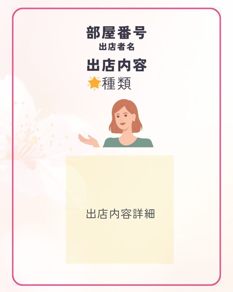 万が一、そのような行為が確認された場合には、運営の判断によりご退出をお願いする場合がございます。皆さまが安心して楽しめる場づくりのため、ご理解とご協力をお願いいたします。どうぞ当日は、たくさんの出会いと楽しい時間をお楽しみください。