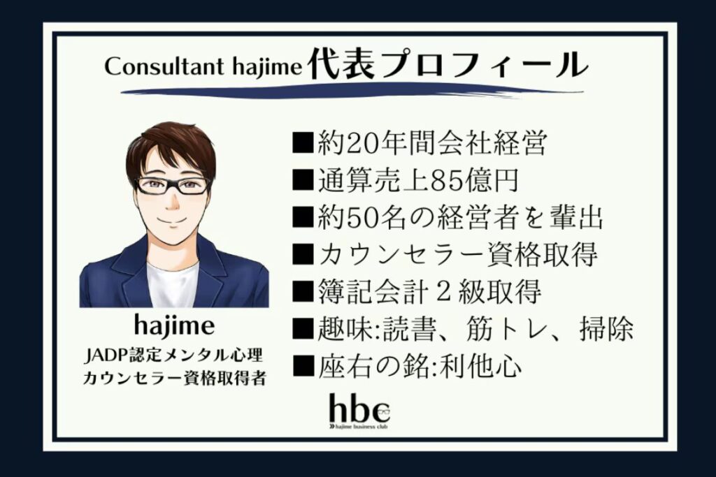 hajime氏プロフィール:30歳で起業し約20年間で、小売業や飲食業、美容業等の事業を展開し、通算売上高85億円、グループ累計250億円を達成!